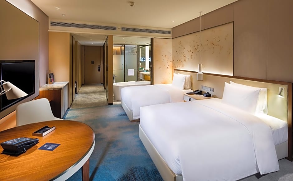 A heated indoor pool is available year-round, complemented by a free gym, sauna, and steam room for some wellness downtime. A 24-hour front desk adds a touch of round-the-clock convenience, and the riverside Binjiang Road setting still keeps Quanzhou’s sights within easy reach for curious explorers.